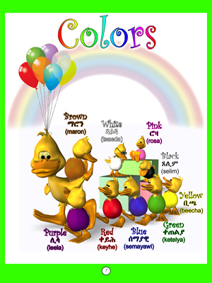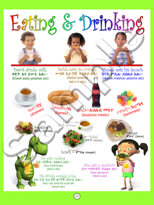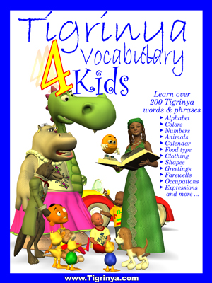 This is a colorful children's book that will teach kids over 200 Tigrinya words and phrases. It is 8.5 x 11 in size and has all full color pages.