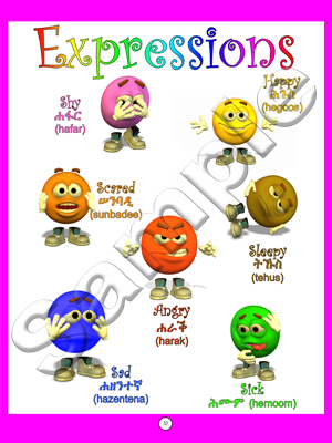 This is a colorful children's book that will teach kids over 200 Tigrinya words and phrases. It is 8.5 x 11 in size and has all full color pages.